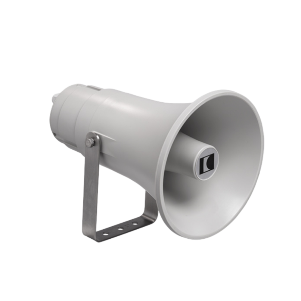 The 15W powered speaker is equipped with a 100V line transformer with 4 power adjustments, also low impedance operation (20 ohm) is possible. The impact-resistant ABS housing UL94V0 in RAL 7035 guarantees long-term stability. For additional reliability, a ceramic block and a thermal fuse is provided in a junction box.
