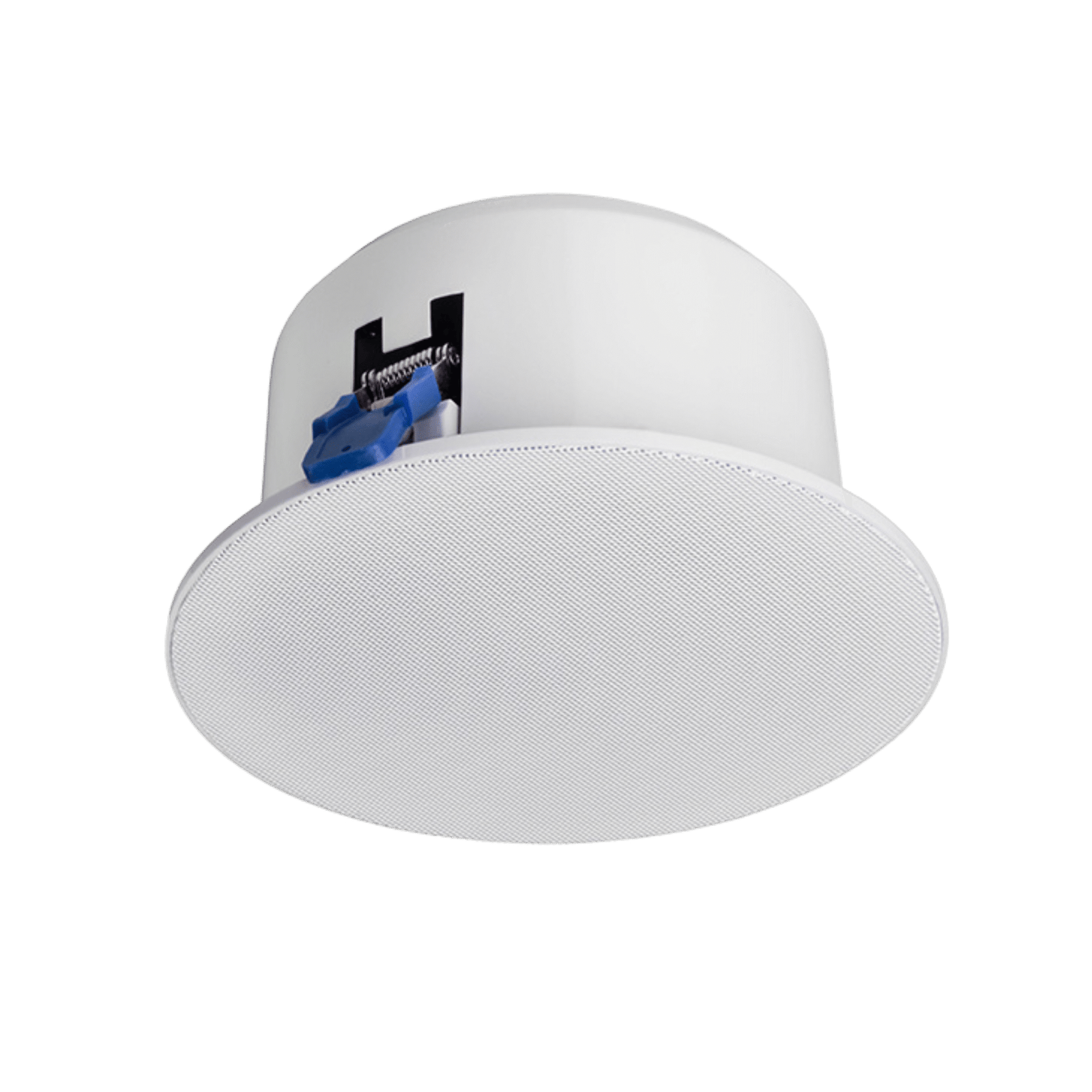 The frameless design of the new ceiling speakers is inspired by current LED lights and already has the makings of a classic. The 6W powered speaker is equipped with a 130mm full-range loudspeaker and a 100V transformer with 3 power adjustments. The powder-coated metal in RAL 9016 guarantees long-term stability. For additional reliability, the speaker is impregnated against wetness.