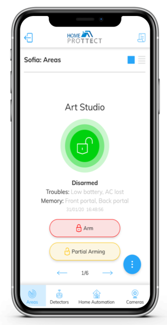 • Detector management – the user can manage (enable/disable) the detectors/zones of the system when needed