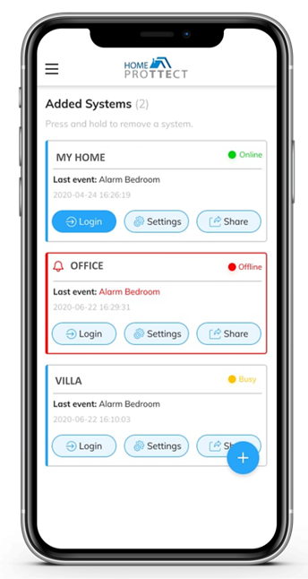 • System sharing – a user can share his system by generating a QR code through the Home ProTTEct app, so another user can add this system as well.
