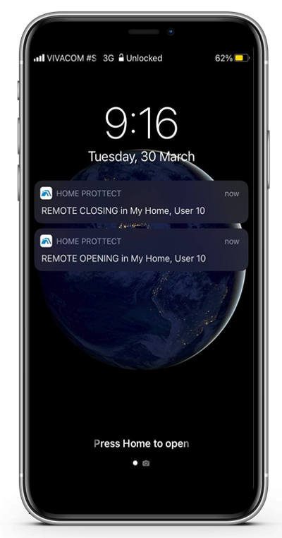 • Push notifications – Home ProTTect sends notification in case of any event in the system