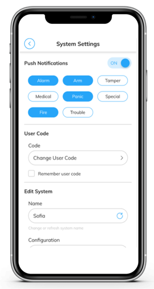 • Remote System control – user can Arm and Disarm his system/s remotely