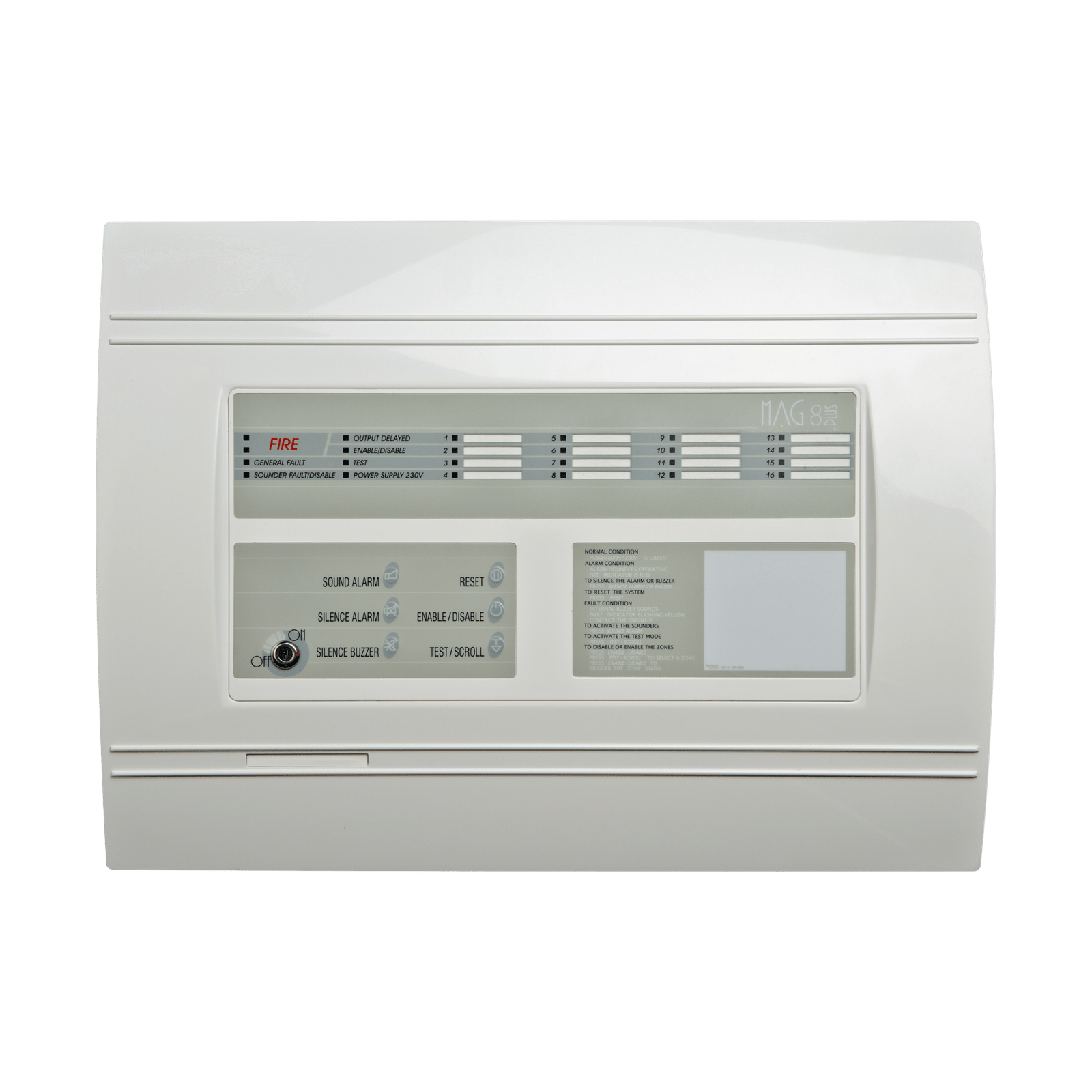 MAG8Plus is a conventional fire detection and indication panel certificated to EN54-2/4.
