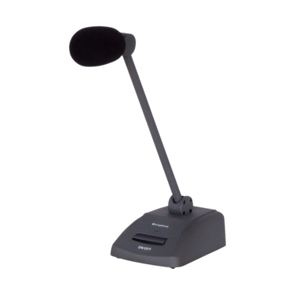 SPIKA-SRM is single push-to-talk button microphone unit for public announcement. Up to 8 SPIKA-SRM units could be connected to the Priority BUS of SPIKA panels. The PTT microphone units could be used to send low priority voice messages in one or multiple zones of the system and are usually used for public announcements by cashiers, parking lot operators, public building administration and others.