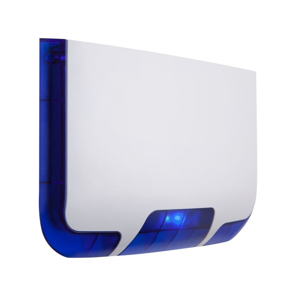 SR 400 is an outdoor piezo siren. The siren has blue flash indication and selectable loudness levels. SR 400 is equipped with inner plastic casing for protection of the electronic parts and bidirectional tamper for higher protection.