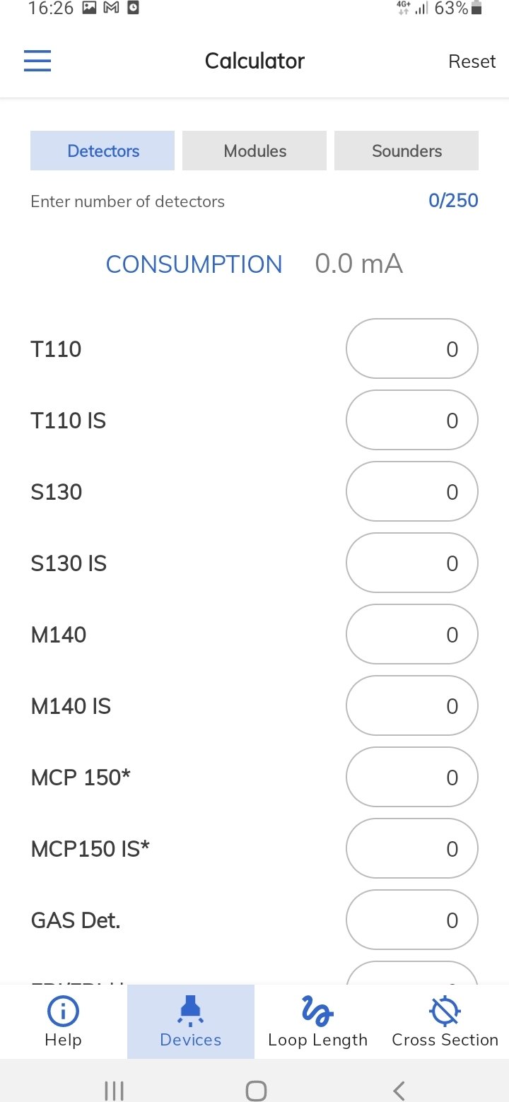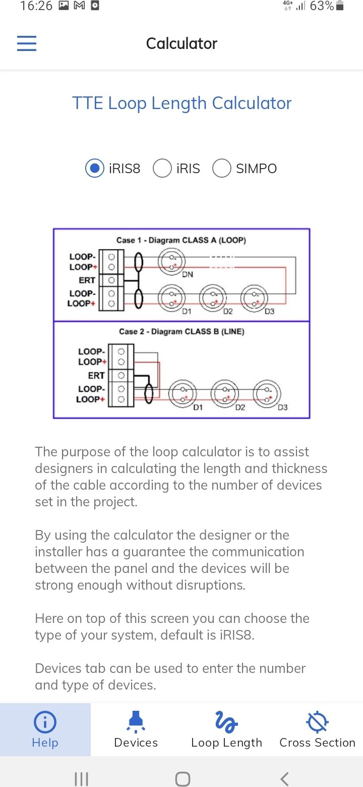 Complimentary loop calculator to assist designers in calculating the length and thickness of the cable according to the number of devices set in the project